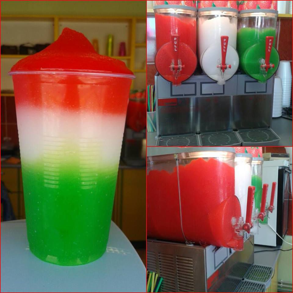 jégkása: jégdarát gyümölcslével vagy fagylalttal kevernek össze, szívószállal iható